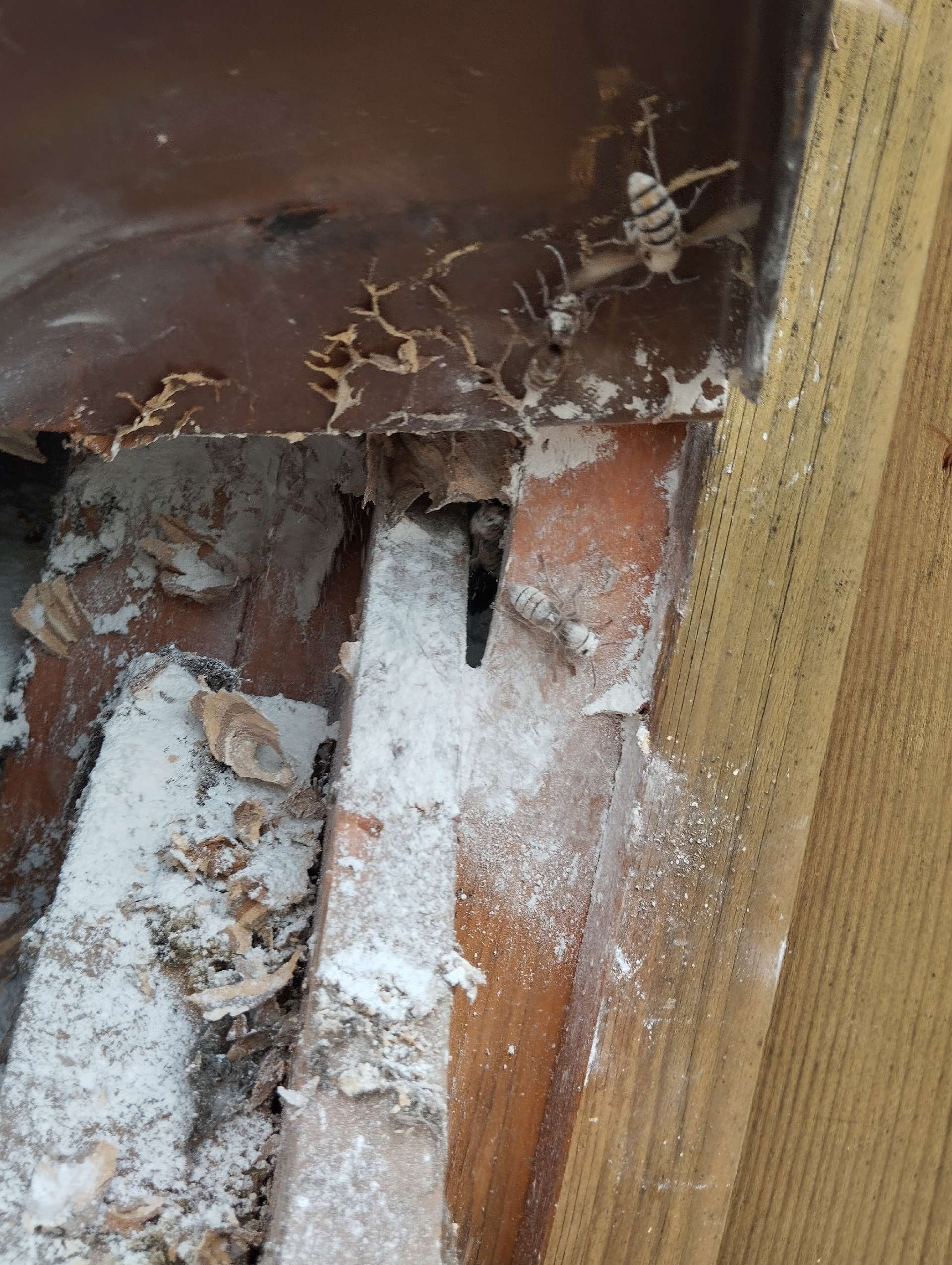 Die Asiatische Hornisse überwintert entweder als Einzelgänger oder in einem Kollektivzustand in verschiedenen Rückzugsorten wie Mauerecken, Gebäuden, Gartenhäusern, Schuppen oder Baumhöhlen.