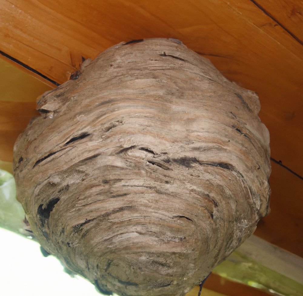 5. Nest: Das Nest der Asiatischen Hornisse ist oft hoch in den Bäumen, aber es kann auch unterirdisch oder in hohen Strukturen wie Schornsteinen gefunden werden. Es hat eine ovale Form und wird aus zerkautem Holz hergestellt, das der Hornisse eine papierartige Struktur gibt.