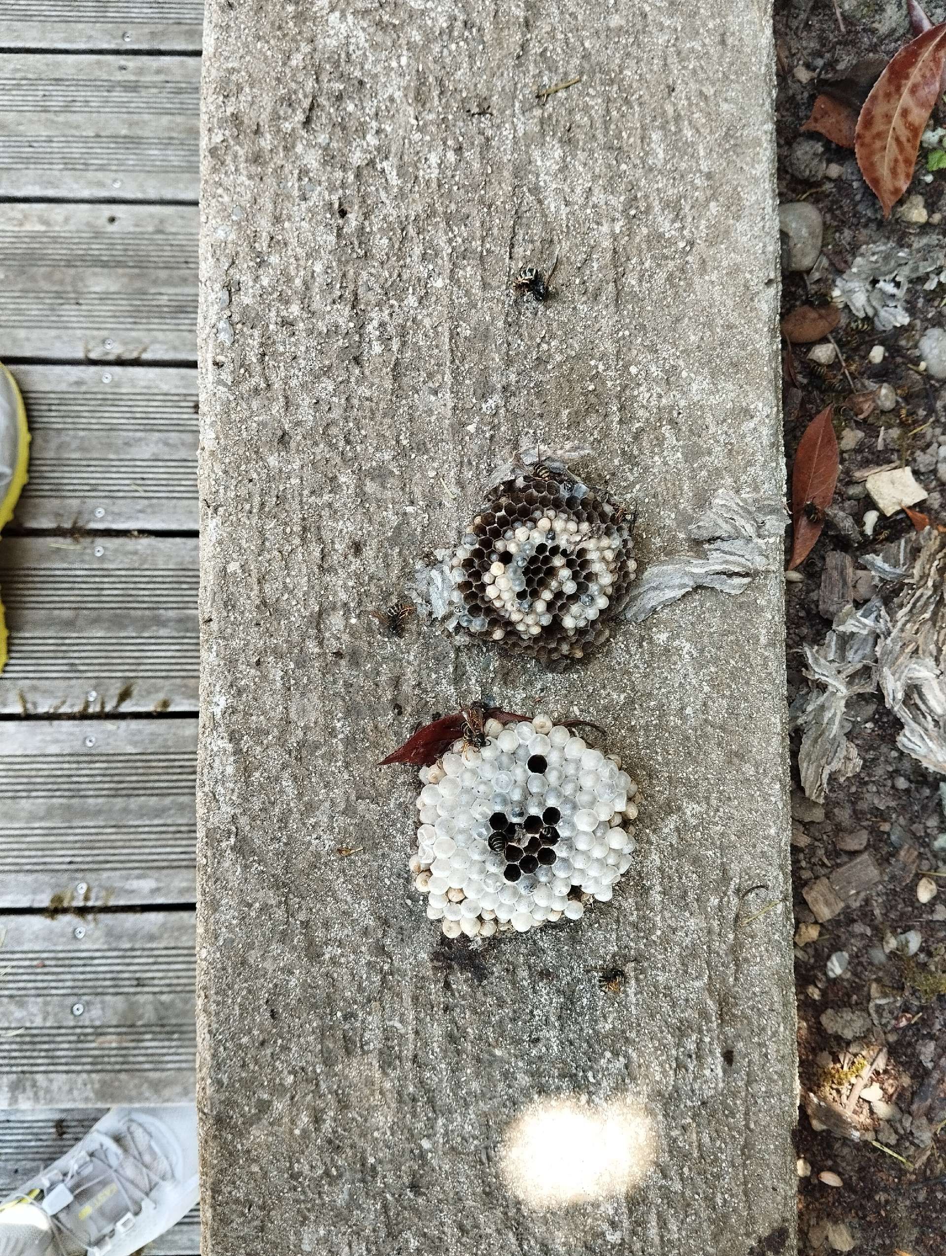 5. Nest: Das Nest der Asiatischen Hornisse ist oft hoch in den Bäumen, aber es kann auch unterirdisch oder in hohen Strukturen wie Schornsteinen gefunden werden. Es hat eine ovale Form und wird aus zerkautem Holz hergestellt, das der Hornisse eine papierartige Struktur gibt.