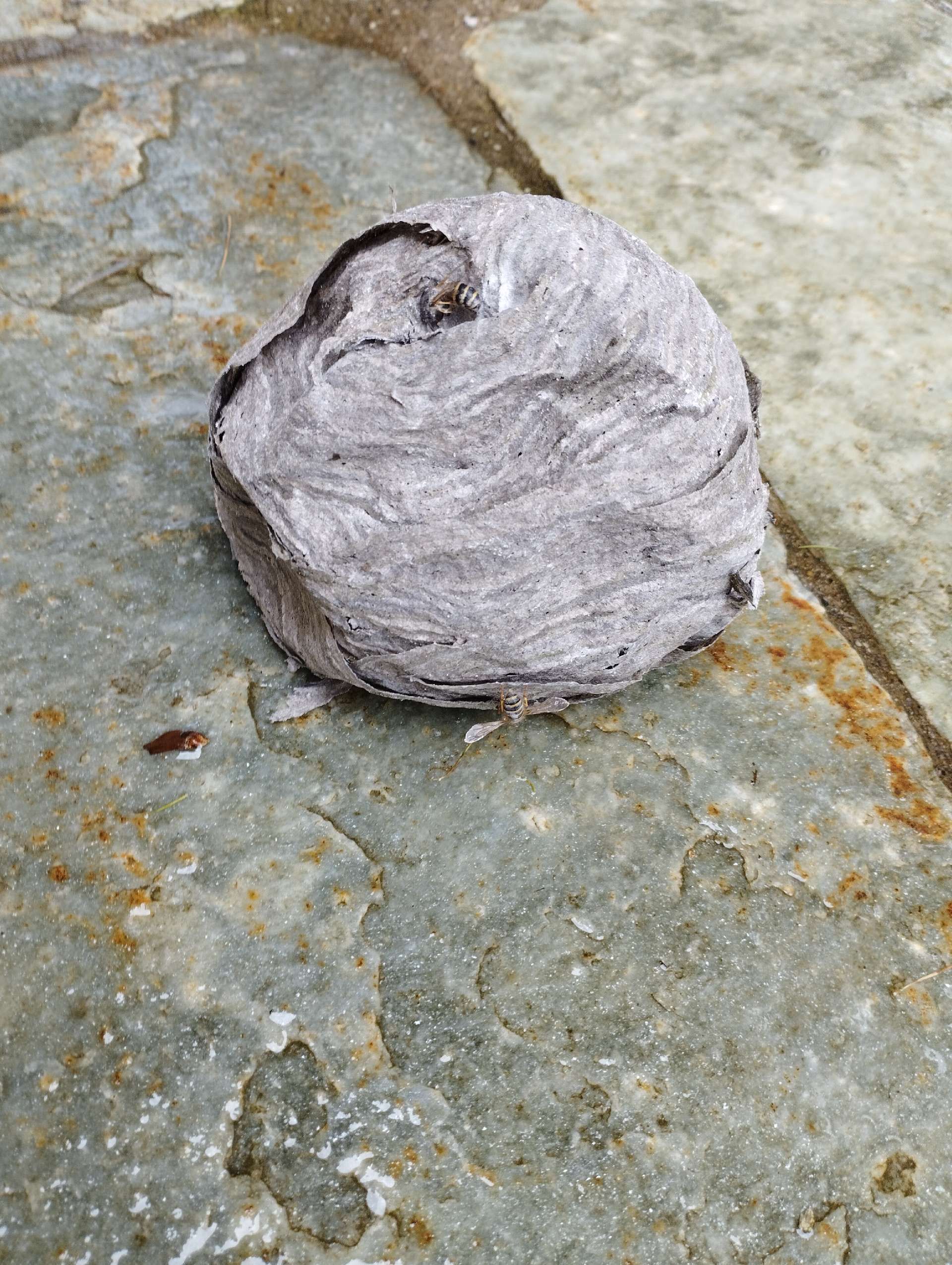 5. Nest: Das Nest der Asiatischen Hornisse ist oft hoch in den Bäumen, aber es kann auch unterirdisch oder in hohen Strukturen wie Schornsteinen gefunden werden. Es hat eine ovale Form und wird aus zerkautem Holz hergestellt, das der Hornisse eine papierartige Struktur gibt.