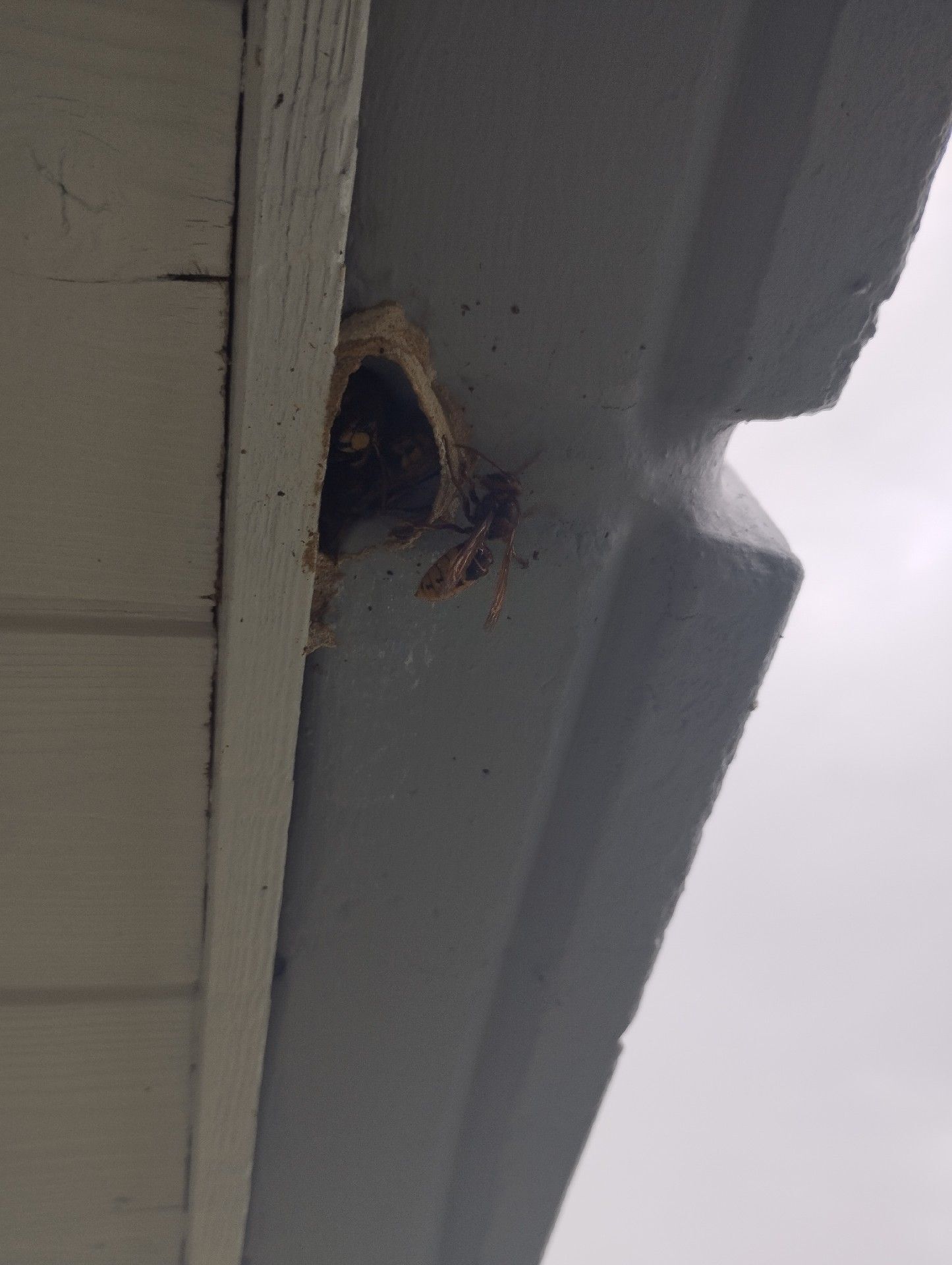 Die Asiatische Hornisse kann entweder in einem Kollektivzustand oder als Einzelgänger überwintern. Dabei sucht sie Unterschlupf in Mauerecken, Gebäuden, Gartenhäusern, Schuppen oder Baumhöhlen.